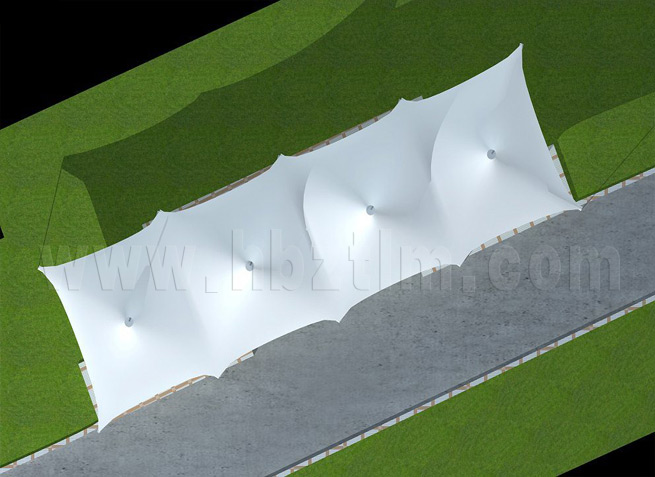 膜材采用PVDF國產(chǎn)或者進(jìn)口建筑膜材、PTFE玻璃纖維建筑膜材、ETFE透明的永久性建筑膜材;自動(dòng)放樣裁剪,高頻焊接,拉伸效果超強(qiáng),曲線成型可千變?nèi)f化;膜材質(zhì)保一般可達(dá)15-20年。