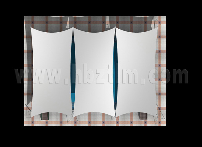 膜材采用PVDF國產(chǎn)或者進(jìn)口建筑膜材、PTFE玻璃纖維建筑膜材、ETFE透明的永久性建筑膜材;自動(dòng)放樣裁剪,高頻焊接,拉伸效果超強(qiáng),曲線成型可千變?nèi)f化;膜材質(zhì)保一般可達(dá)15-20年。