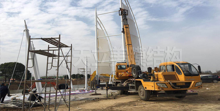 孝昌鳳凰天仙城與湖北中天立美膜結(jié)構(gòu)公司簽定一帆風(fēng)順景觀膜結(jié)構(gòu)項目,該項目為一帆風(fēng)順景觀膜定制,我們的膜結(jié)構(gòu)設(shè)計師結(jié)合現(xiàn)場環(huán)境給客戶設(shè)計出了"一帆風(fēng)順"造型,甲方確認(rèn)非常滿意,該景觀膜結(jié)構(gòu)整體長22米,高22米,寬7米,相同景觀膜結(jié)構(gòu)造型共2組.