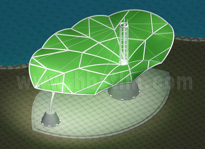 該項(xiàng)目為永久式景觀遮陽傘,其結(jié)構(gòu)為內(nèi)撐式冒頂膜...
