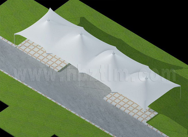 膜材采用PVDF國產(chǎn)或者進(jìn)口建筑膜材、PTFE玻璃纖維建筑膜材、ETFE透明的永久性建筑膜材;自動(dòng)放樣裁剪,高頻焊接,拉伸效果超強(qiáng),曲線成型可千變?nèi)f化;膜材質(zhì)保一般可達(dá)15-20年。