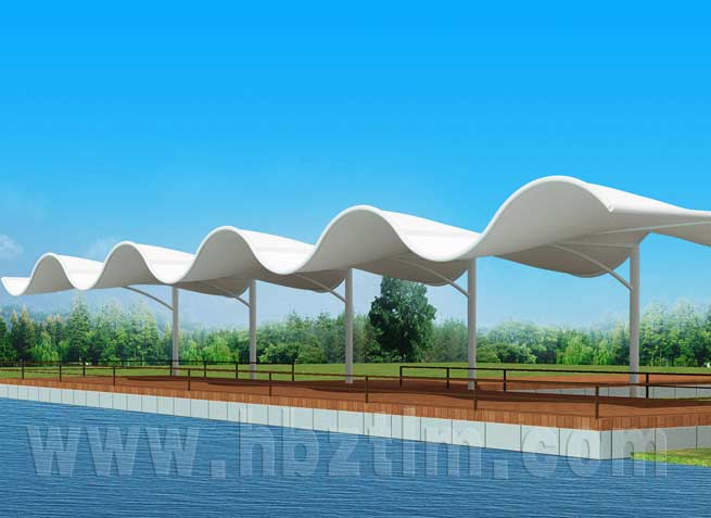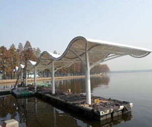 武漢東湖執(zhí)法艇碼頭景觀膜結構?,該項目結構為S...