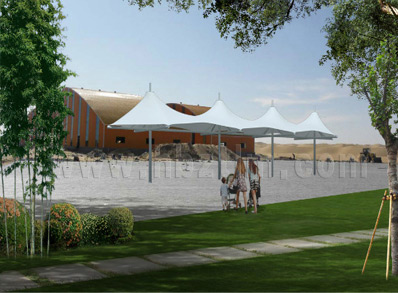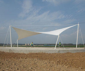 老河口市軍用機(jī)場觀景臺張拉膜結(jié)構(gòu)?,其結(jié)構(gòu)以鋼...
