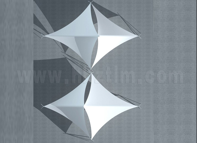 膜材采用PVDF國產(chǎn)或者進口建筑膜材、PTFE玻璃纖維建筑膜材、ETFE透明的永久性建筑膜材;自動放樣裁剪,高頻焊接,拉伸效果超強,曲線成型可千變?nèi)f化;膜材質(zhì)保一般可達15-20年。