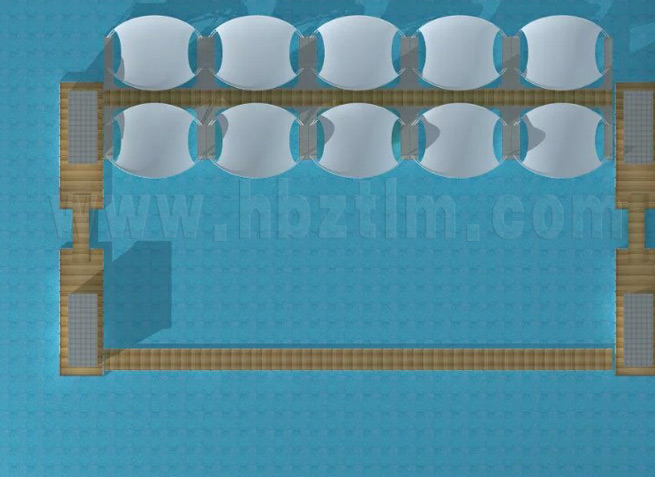 膜材采用PVDF國產(chǎn)或者進(jìn)口建筑膜材、PTFE玻璃纖維建筑膜材、ETFE透明的永久性建筑膜材;自動放樣裁剪,高頻焊接,拉伸效果超強(qiáng),曲線成型可千變?nèi)f化;膜材質(zhì)保一般可達(dá)15-20年。