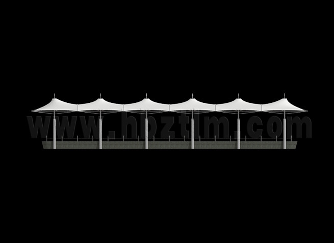 膜材采用PVDF國產(chǎn)或者進(jìn)口建筑膜材、PTFE玻璃纖維建筑膜材、ETFE透明的永久性建筑膜材;自動放樣裁剪,高頻焊接,拉伸效果超強(qiáng),曲線成型可千變?nèi)f化;膜材質(zhì)保一般可達(dá)15-20年。