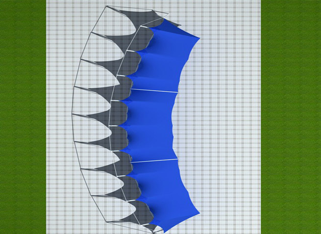 膜材采用PVDF國產(chǎn)或者進(jìn)口建筑膜材、PTFE玻璃纖維建筑膜材、ETFE透明的永久性建筑膜材;自動(dòng)放樣裁剪,高頻焊接,拉伸效果超強(qiáng),曲線成型可千變?nèi)f化;膜材質(zhì)保一般可達(dá)15-20年。