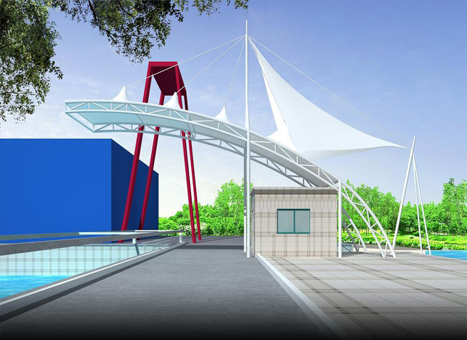 膜材采用PVDF國產或者進口建筑膜材、PTFE玻璃纖維建筑膜材、ETFE透明的永久性建筑膜材;自動放樣裁剪,高頻焊接,拉伸效果超強,曲線成型可千變萬化;膜材質保一般可達15-20年。