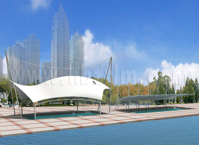 膜材采用PVDF國產(chǎn)或者進口建筑膜材、PTFE玻璃纖維建筑膜材、ETFE透明的永久性建筑膜材;自動放樣裁剪,高頻焊接,拉伸效果超強,曲線成型可千變?nèi)f化;膜材質(zhì)保一般可達15-20年。