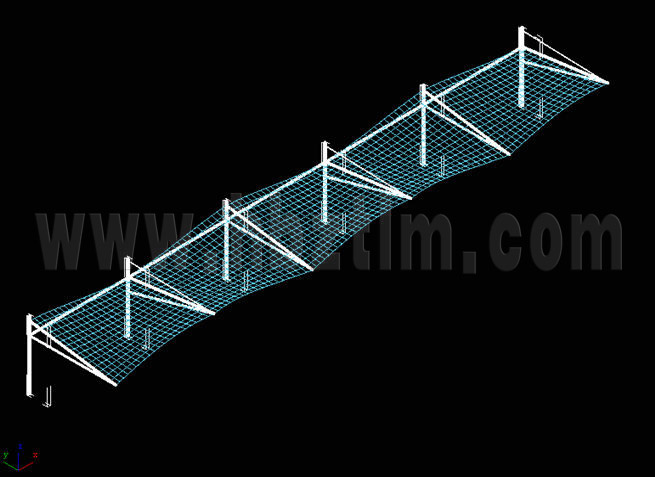 膜材采用PVDF國產(chǎn)或者進(jìn)口建筑膜材、PTFE玻璃纖維建筑膜材、ETFE透明的永久性建筑膜材;自動放樣裁剪,高頻焊接,拉伸效果超強(qiáng),曲線成型可千變?nèi)f化;膜材質(zhì)保一般可達(dá)15-20年。