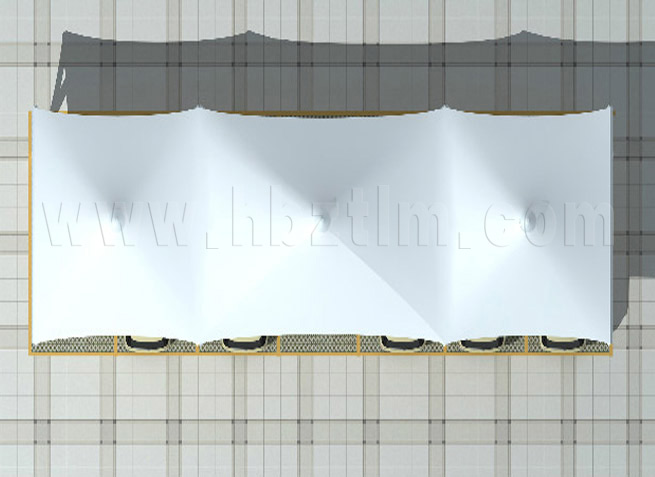 膜材采用PVDF國產(chǎn)或者進口建筑膜材、PTFE玻璃纖維建筑膜材、ETFE透明的永久性建筑膜材;自動放樣裁剪,高頻焊接,拉伸效果超強,曲線成型可千變?nèi)f化;膜材質(zhì)保一般可達15-20年。