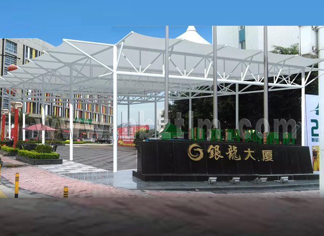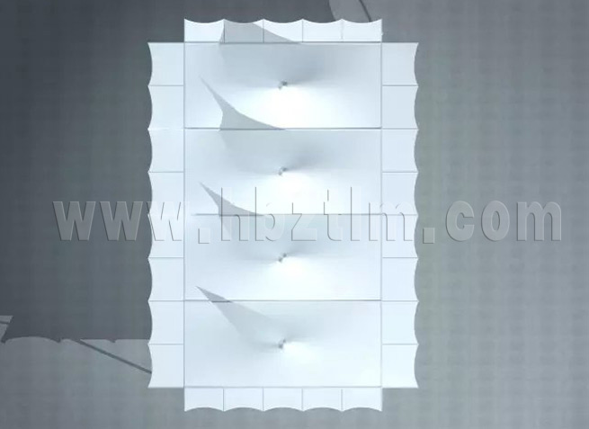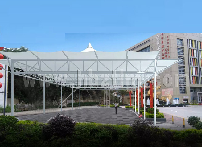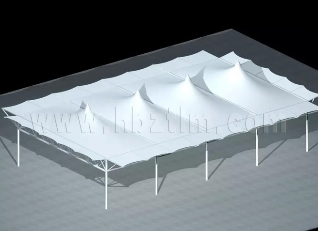 膜材采用PVDF國產(chǎn)或者進口建筑膜材、PTFE玻璃纖維建筑膜材、ETFE透明的永久性建筑膜材;自動放樣裁剪,高頻焊接,拉伸效果超強,曲線成型可千變?nèi)f化;膜材質(zhì)保一般可達15-20年。