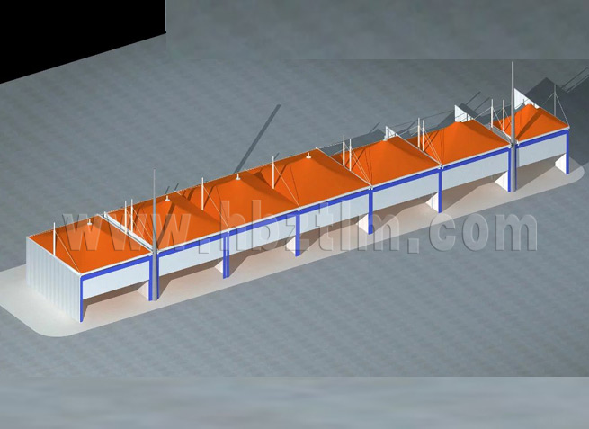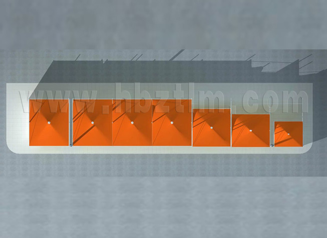膜材采用PVDF國產(chǎn)或者進口建筑膜材、PTFE玻璃纖維建筑膜材、ETFE透明的永久性建筑膜材;自動放樣裁剪,高頻焊接,拉伸效果超強,曲線成型可千變?nèi)f化;膜材質(zhì)保一般可達15-20年。