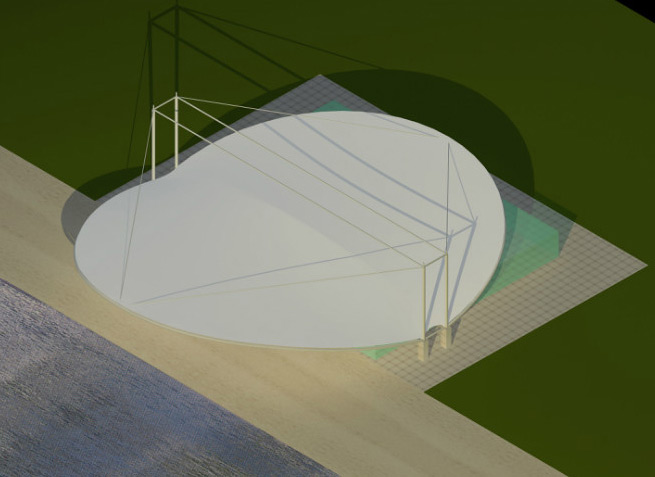 膜材采用PVDF國產或者進口建筑膜材、PTFE玻璃纖維建筑膜材、ETFE透明的永久性建筑膜材;自動放樣裁剪,高頻焊接,拉伸效果超強,曲線成型可千變萬化;膜材質保一般可達15-20年。