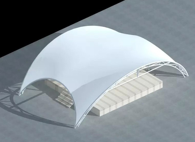 膜材采用PVDF國產(chǎn)或者進口建筑膜材、PTFE玻璃纖維建筑膜材、ETFE透明的永久性建筑膜材;自動放樣裁剪,高頻焊接,拉伸效果超強,曲線成型可千變?nèi)f化;膜材質(zhì)保一般可達15-20年。