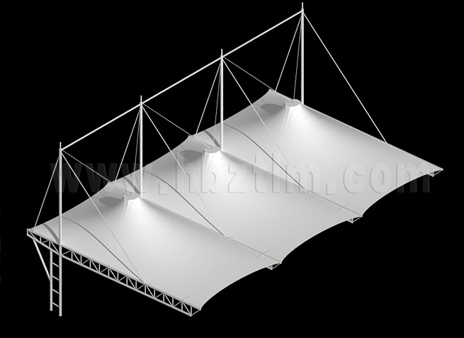 膜材采用PVDF國產(chǎn)或者進(jìn)口建筑膜材、PTFE玻璃纖維建筑膜材、ETFE透明的永久性建筑膜材;自動(dòng)放樣裁剪,高頻焊接,拉伸效果超強(qiáng),曲線成型可千變?nèi)f化;膜材質(zhì)保一般可達(dá)15-20年。