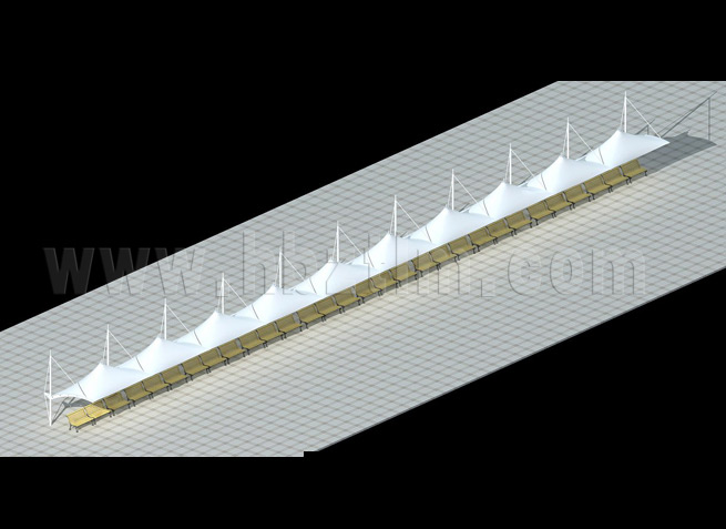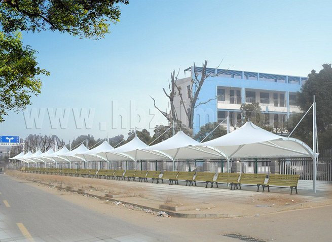 膜材采用PVDF國產(chǎn)或者進口建筑膜材、PTFE玻璃纖維建筑膜材、ETFE透明的永久性建筑膜材;自動放樣裁剪,高頻焊接,拉伸效果超強,曲線成型可千變?nèi)f化;膜材質(zhì)保一般可達15-20年。