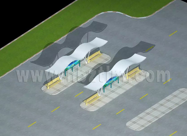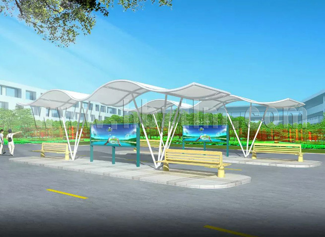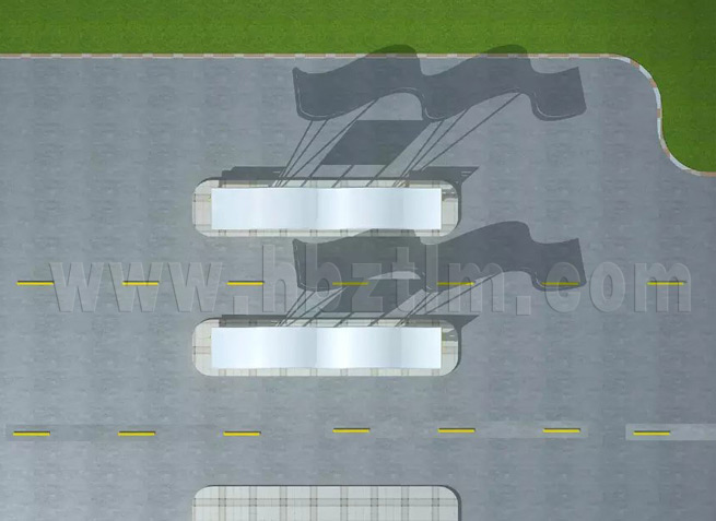 膜材采用PVDF國產或者進口建筑膜材、PTFE玻璃纖維建筑膜材、ETFE透明的永久性建筑膜材;自動放樣裁剪,高頻焊接,拉伸效果超強,曲線成型可千變萬化;膜材質保一般可達15-20年。