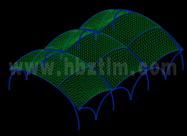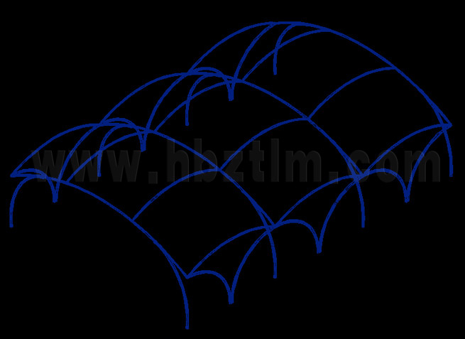 膜材采用PVDF國產(chǎn)或者進口建筑膜材、PTFE玻璃纖維建筑膜材、ETFE透明的永久性建筑膜材;自動放樣裁剪,高頻焊接,拉伸效果超強,曲線成型可千變?nèi)f化;膜材質(zhì)保一般可達15-20年。