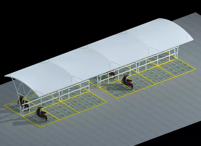 膜材采用PVDF國產或者進口建筑膜材、PTFE玻璃纖維建筑膜材、ETFE透明的永久性建筑膜材;自動放樣裁剪,高頻焊接,拉伸效果超強,曲線成型可千變萬化;膜材質保一般可達15-20年。
