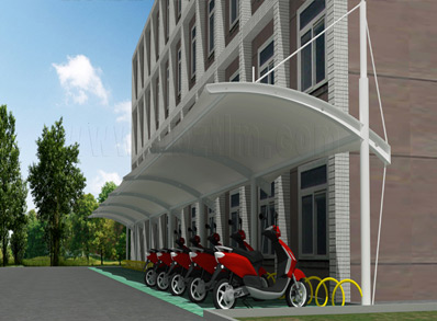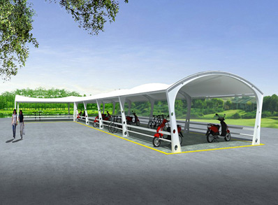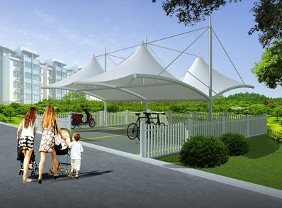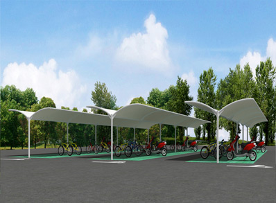恒天嘉華張拉式冒頂膜結(jié)構(gòu)自行車車棚,本頂目為冒...