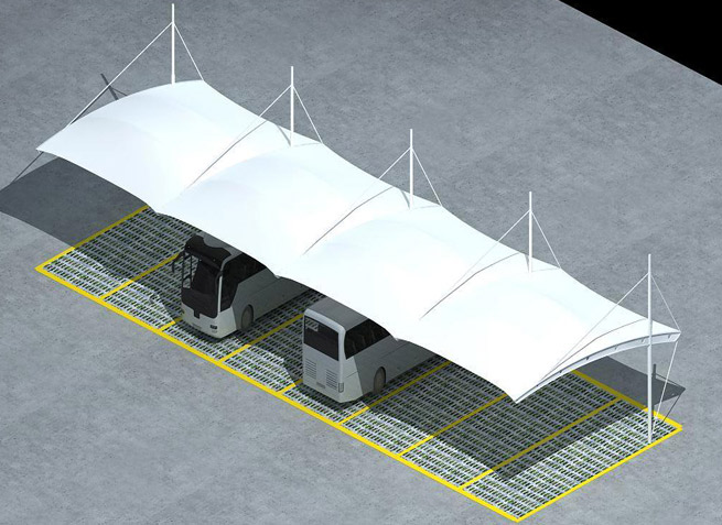 湖北凱騎公司吊塔式異形鋼膜結構車棚,本項目采用...
