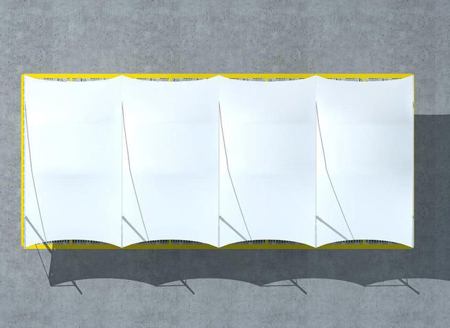 膜材采用PVDF國產或者進口建筑膜材、PTFE玻璃纖維建筑膜材、ETFE透明的永久性建筑膜材;自動放樣裁剪,高頻焊接,拉伸效果超強,曲線成型可千變萬化;膜材質保一般可達15-20年。