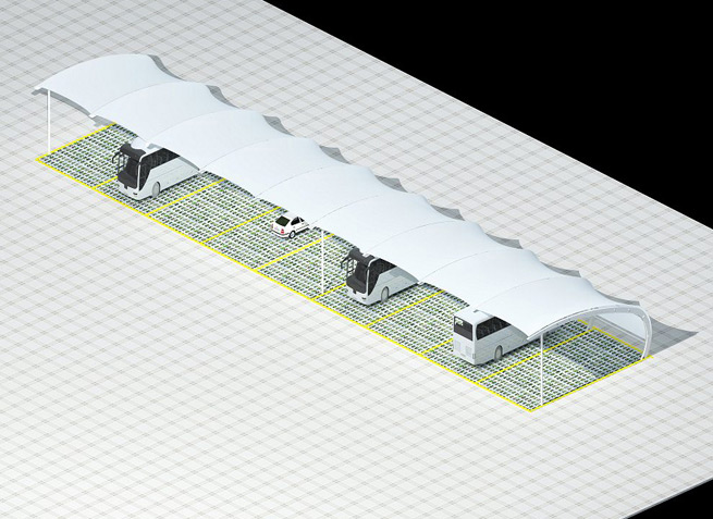 恒天嘉華張拉式冒頂膜結(jié)構(gòu)自行車車棚,本頂目為冒...