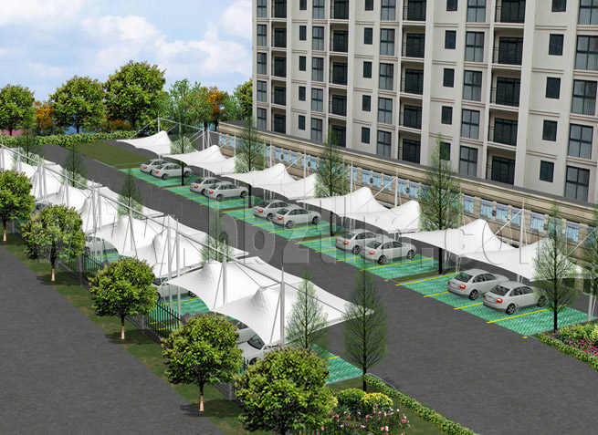 新豐縣環(huán)境保護局異型鋼冒頂膜結構車棚,本頂目為...