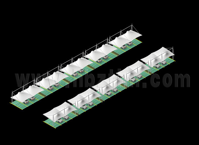 湖北長江楚韻吊塔式異型鋼膜結構車棚,本項目采...