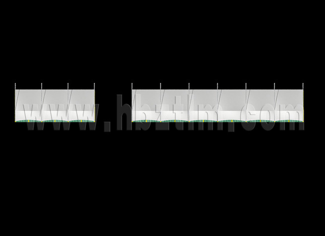膜材采用PVDF國產(chǎn)或者進(jìn)口建筑膜材、PTFE玻璃纖維建筑膜材、ETFE透明的永久性建筑膜材;自動放樣裁剪,高頻焊接,拉伸效果超強(qiáng),曲線成型可千變?nèi)f化;膜材質(zhì)保一般可達(dá)15-20年。