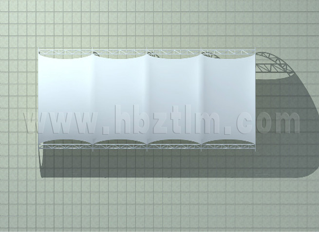 膜材采用PVDF國產(chǎn)或者進(jìn)口建筑膜材、PTFE玻璃纖維建筑膜材、ETFE透明的永久性建筑膜材;自動放樣裁剪,高頻焊接,拉伸效果超強(qiáng),曲線成型可千變?nèi)f化;膜材質(zhì)保一般可達(dá)15-20年。