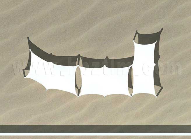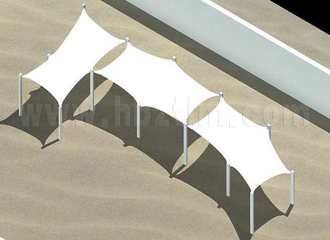 膜材采用PVDF國產(chǎn)或者進(jìn)口建筑膜材、PTFE玻璃纖維建筑膜材、ETFE透明的永久性建筑膜材;自動放樣裁剪,高頻焊接,拉伸效果超強(qiáng),曲線成型可千變?nèi)f化;膜材質(zhì)保一般可達(dá)15-20年。