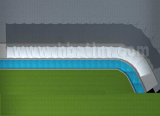 膜材采用PVDF國產(chǎn)或者進口建筑膜材、PTFE玻璃纖維建筑膜材、ETFE透明的永久性建筑膜材;自動放樣裁剪,高頻焊接,拉伸效果超強,曲線成型可千變?nèi)f化;膜材質(zhì)保一般可達15-20年。