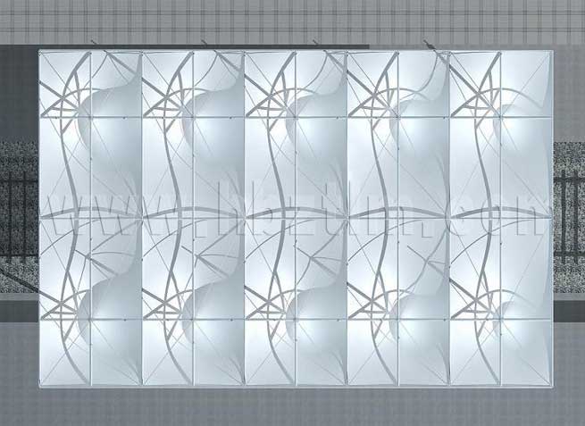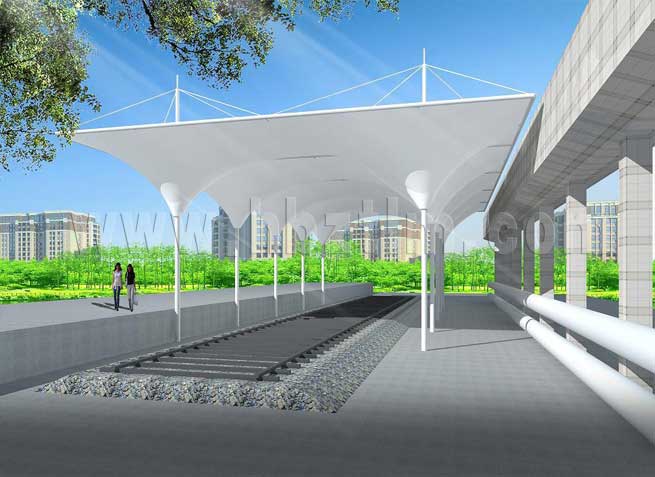膜材采用PVDF國(guó)產(chǎn)或者進(jìn)口建筑膜材、PTFE玻璃纖維建筑膜材、ETFE透明的永久性建筑膜材;自動(dòng)放樣裁剪,高頻焊接,拉伸效果超強(qiáng),曲線成型可千變?nèi)f化;膜材質(zhì)保一般可達(dá)15-20年。