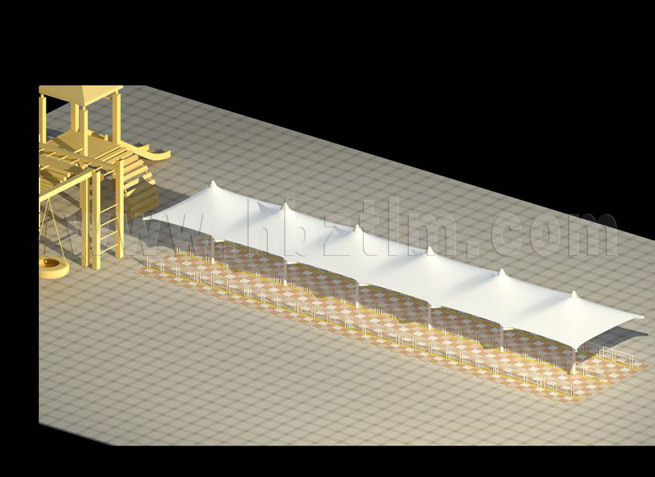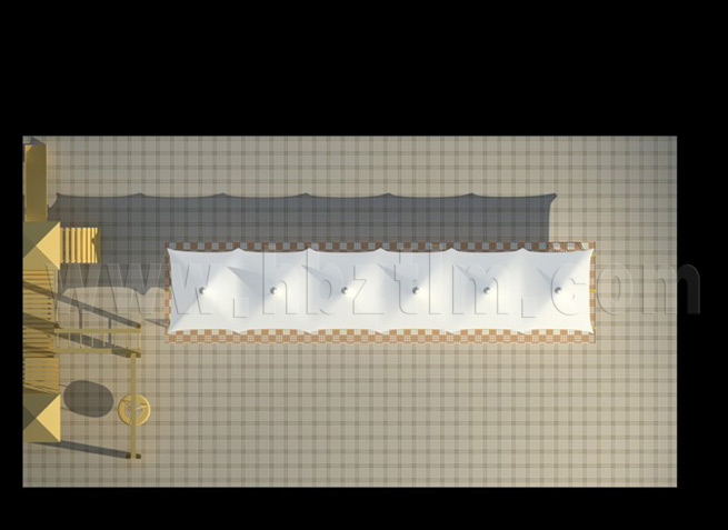膜材采用PVDF國產(chǎn)或者進(jìn)口建筑膜材、PTFE玻璃纖維建筑膜材、ETFE透明的永久性建筑膜材;自動放樣裁剪,高頻焊接,拉伸效果超強(qiáng),曲線成型可千變?nèi)f化;膜材質(zhì)保一般可達(dá)15-20年。