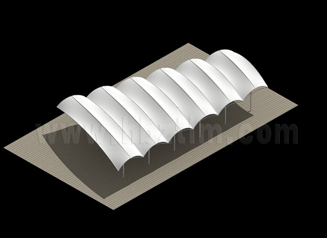 膜材采用PVDF國(guó)產(chǎn)或者進(jìn)口建筑膜材、PTFE玻璃纖維建筑膜材、ETFE透明的永久性建筑膜材;自動(dòng)放樣裁剪,高頻焊接,拉伸效果超強(qiáng),曲線成型可千變?nèi)f化;膜材質(zhì)保一般可達(dá)15-20年。
