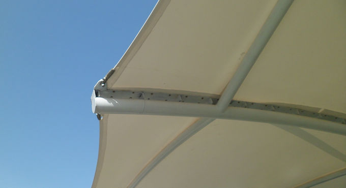 湖北美味源公司吊塔式圓管膜結(jié)構(gòu)汽車車棚,本項(xiàng)目采用前軟邊后硬邊張拉形式,結(jié)構(gòu)由立柱、拉桿、挑梁、橫桿構(gòu)成,其挑梁和中間橫桿一般采用弧管形式,美觀而不積水且抗負(fù)荷能力強(qiáng);膜材采用ZZF白色建筑膜材,15年質(zhì)保,整體結(jié)構(gòu)美觀實(shí)用,經(jīng)濟(jì)牢固,臻至完美。
