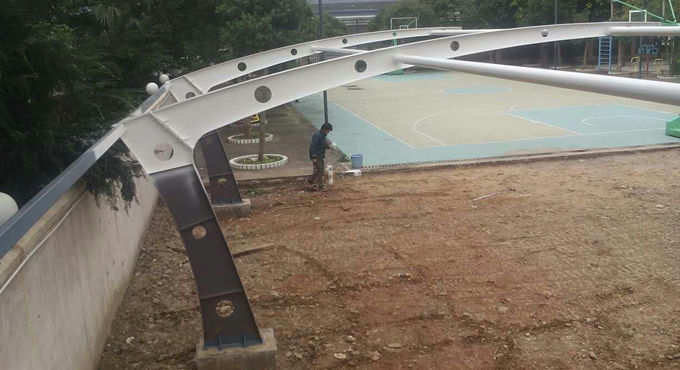 ? 新豐縣氣象局異形鋼L型膜結(jié)構(gòu)車棚,本頂目為L型膜結(jié)構(gòu)車棚,采用異形鋼梁 前軟邊,后硬邊張拉形式,美觀而實(shí)用;膜材采用PVDF白色車棚專用建筑膜材,整體結(jié)構(gòu)從設(shè)計(jì)到施工,都精工細(xì)作,臻至完美。?