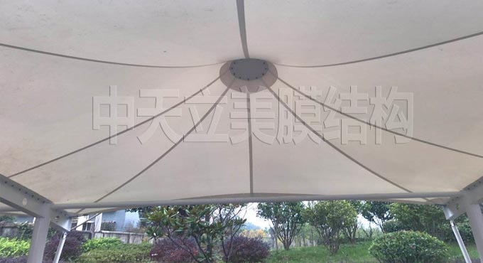 黃石黃金山開發(fā)區(qū)四棵街道辦事處選擇與中天立美膜結(jié)構(gòu)公司合作膜結(jié)構(gòu)車棚項目,本次膜結(jié)構(gòu)車棚項目采用帽頂張拉式結(jié)構(gòu),帽頂造型牢固,美觀,更具有一定的景觀性。