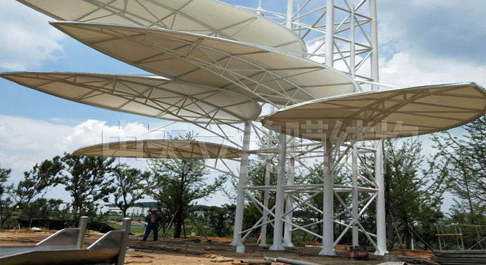 中天立美膜結(jié)構(gòu)公司隨州廣水市公園張拉膜施工,公園兩處地方,一共做了兩個(gè)造型不一樣的小景觀張拉膜,為公園增加一道亮麗風(fēng)景.