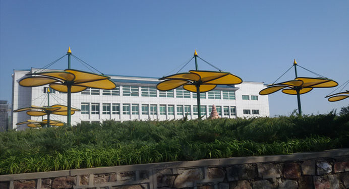 遼寧財(cái)貿(mào)學(xué)院葫蘆島景觀膜結(jié)構(gòu),該項(xiàng)目結(jié)構(gòu)以花瓣的外形為基本參照設(shè)計(jì),全弧管結(jié)構(gòu)拼裝,做工精細(xì),整體流線型的外形和建筑膜材全硬邊式張拉給人以剛?cè)嶂?,為了豐富其視角效果,我們采用了彩色建筑膜以示渲染,作為公園的休閑景觀,既給人以納涼之處,又給整體環(huán)境以時尚現(xiàn)代之美。此類結(jié)構(gòu)被廣泛應(yīng)用于公園、江河湖畔...