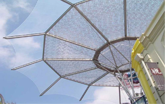 不僅如此,這種膜還具有自清潔功能,使灰塵不易附在其表面,清潔周期大約為5年。這種材料另一大優(yōu)點就是可在現(xiàn)場預(yù)制成薄膜氣泡,方便施工和維修。另外成本合理也是其極具競爭力的另一優(yōu)勢,覆蓋層加上結(jié)構(gòu)的費用只有玻璃的一半,而使用壽命卻長達35年。