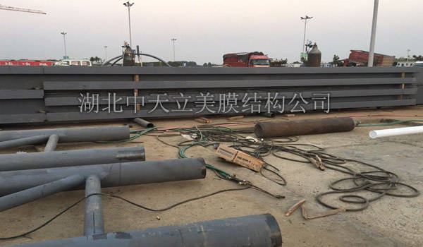 熱烈祝賀中天立美公司與荊門愛飛客簽訂膜結(jié)構(gòu)大門項(xiàng)目,膜結(jié)構(gòu)大門項(xiàng)目總面積達(dá)1380.5平方,采用張拉形式,整體造型美觀,大氣,時(shí)尚 牢固實(shí)用。如果您想了解膜結(jié)構(gòu)大門工程,就隨中天立美膜結(jié)構(gòu)小編一起去現(xiàn)場(chǎng)看看膜結(jié)構(gòu)大門現(xiàn)場(chǎng)施工情況。